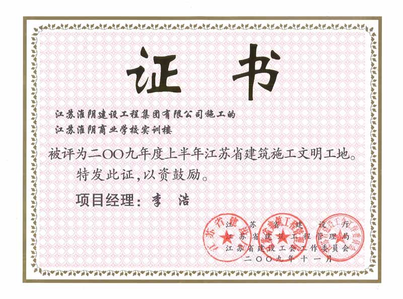 2009年省文明工地江苏淮阴商业学校实训楼-李浩